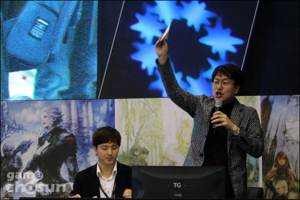 ▲ 파이널판타지14 보스 레이드 시연을 직접 보여준 액토즈소프트 직원들