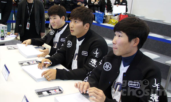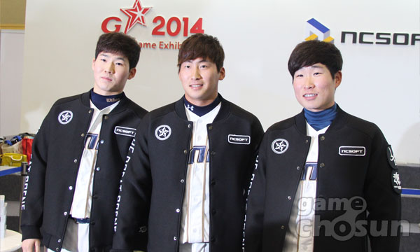 지난 21일 NC다이노스의 젊은 유망주 '나성범'과 '이재학', '박민우' 선수가 지스타 2014가 진행되고 있는 부산 벡스코 엔씨소프트 부스를 찾아와 싸인회 시간을 가졌다.