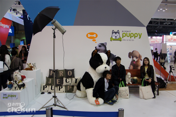 '프로젝트 퍼피'는 강아지를 매개로 한 감성 소셜 네트워크 게임으로, 이번에 지스타를 찾은 여성 관람객의 눈길을 사로잡았다.