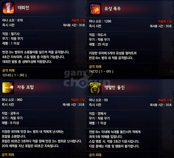 ▲ 직업별 엘리트로드 전용 특수 스킬