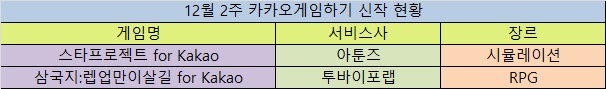 12월 2주 카톡신작은 시뮬레이션과 RPG 장르 2종이 출시 됐다.