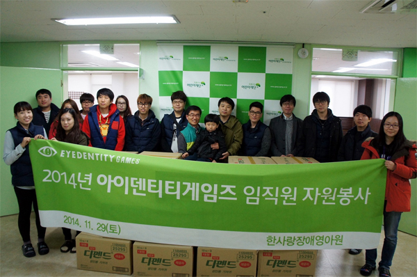 '드래곤네스트' 개발사 아이덴티티게임즈도 최근 경기도 광주시 한사랑장애영아원을 찾아 봉사활동을 진행했다. 아이덴티티게임즈 임직원들은 중증 장애아동의 식사보조와 재활훈련을 도우며 부족한 일손을 거들었다.