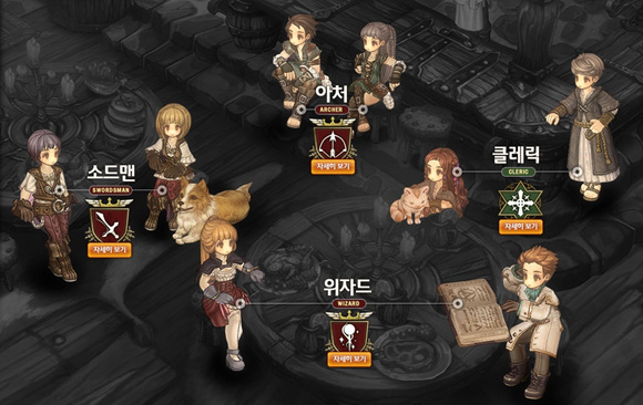 1차 CBT에서 공개되는 기본직업은 소드맨, 아처, 클레릭, 위저드 이상 4가지이며, 하나의 기본직업에서 파생되는 세부직업은 총 6가지이다. 전직은 총 3차례가 가능하며 공식 홈페이지에서 직업이름을 보면서 직업을 선택해볼 수 있다.