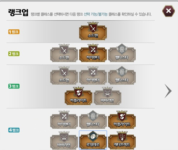 단, 기존 직업은 최대 2번까지만 재선택이 가능하다. 예를들면 기본직업 '소드맨'을 선택하고 첫 번째 전직시 다시 '소드맨'을 선택하고 두 번째 전직시 다시 '소드맨'을 선택했다면, 그 다음 전직시에는 '소드맨'을 선택할 수 없다.