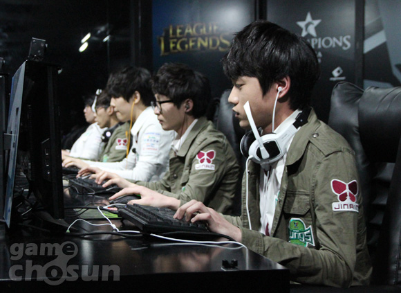 진에어그린윙스(이하 진에어)는 16일 서울 용산 e스포츠스타디움에서 열린 '2015 스베누 LOL 챔피언스 코리아 스프링(이하 롤챔스)' 2주차 5경기 1세트에서 GE타이거즈(이하 GE)에게 승리했다.