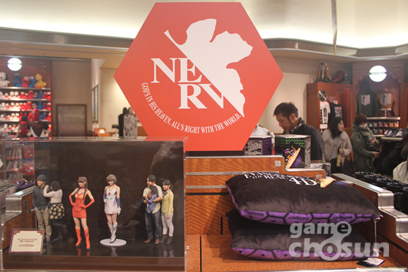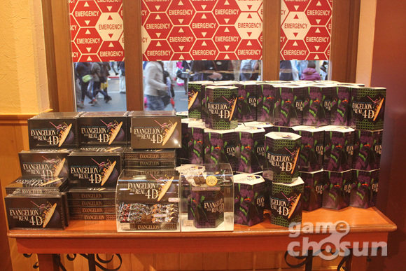 애니메이션 '에반게리온'을 소재로 제작된 상영관 '에반게리온 더 리얼 4-D'에서는 '에반게리온'을 소재로 만들어진 4D 애니메이션 영상을 관람할 수 있다. 4D 영상인 만큼 의자가 흔들리거나 물이 튀고 비눗방울이 위에서 내려오는 등의 효과도 있다. 관람객이 기다리는 대기실은 '에반게리온'의 '대피소'(셀터)라는 설정이며 '이카리 겐도'의 목소리를 들을 수 있다.