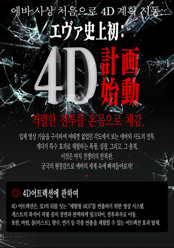 '에반게리온 더 리얼 4-D'는 1월 23일부터 5월 10일까지 일본 오사카 유니버설 스튜디오 재팬에서 운영된다.