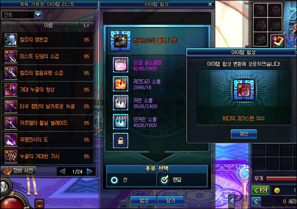 이번 업데이트로 신규 콘텐츠 ‘아이템 합성 시스템’이 추가된다. 아이템 합성 시스템은 레어부터 최대 레전더리 등급의 아이템을 얻을 수 있는 일종의 ‘뽑기’ 시스템이다. 자신이 가지고 있는 장비 아이템과 일정 재료를 지불하면 같은 등급의 새로운 아이템을 획득할 수 있다. 이때 소모되는 재료는 ‘등급별 소울’로 이 등급별 소울은 해체가에게 해당 등급에 맞는 아이템을 해체했을 때 획득할 수 있다.
