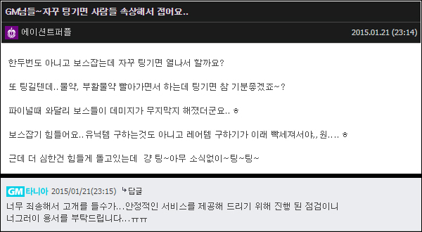 무엇보다 눈에 띈 것은 만점을 줘도 모자를 고객 운영. 엘로아 GM들의 활약상은 익히 알고 있다. 타 게임 유저들이 자신들의 게임에 대한 아쉬움을 토로할 때 소위 '짤방'으로 가져다 쓸 정도로 유명했으니까. 게시판 응대, 1:1 문의는 물론이고, 게시판에서의 질문 글에 대해서 GM이 게임 내 출두하여 해결을 해준 사례 등 서비스 초반인 지금 생길 수 있는 여러 유저들의 의견에 대하여 일일히 공지사항을 통해 해명 및 안내를 하고, 개발PD 가 직접 정기적으로 콘텐츠에 대한 일화를 얘기해주거나 안내를 해주는 등 각별한 운영이 돋보였다. 공감과 소통, 그들이 말하는 운영 방침이다.