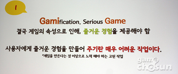 마지막으로 그는 "사용자에게 즐거운 경험을 만들어주는 게임 개발은 어려운 작업이다. 그리고 기능성게임 개발은 게임 개발 이상으로 노력해야하는 고된 작업이다. 그래서 개발진이 자신이 만드는 것에 의미를 찾는 것이 중요하다"고 말했다.