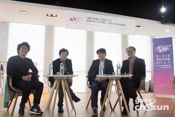 26일 판교 공공지원센터에서 열린 게임행사 'G-HUB 게임커넥트'에서 '40대 게임 개발자'를 주제로 좌담회가 열렸다. 좌담회에는 송재경 엑스엘게임즈 대표, 서관희 엔트리브소프트 대표, 넥슨 김동건 본부장, 홍동희 前 막고야 대표가 참가했다. 진행은 김종득 게임개발자연대 대표가 맡았다.