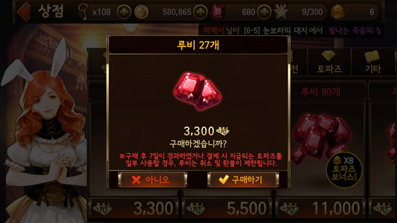 만약,'다이아몬드 10개' 중 일부를 소모했거나, '크리스탈5개' 중 일부를 소모했다면 '사용한 것'이 되어 청약철회가 되지 않는다.