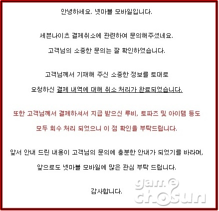 그런데 게임을 하면서 유료아이템을 구매하다보면 실수로 잘못 구입한 경우, 한 순간의 '충동구매' 등 유료아이템 구매를 취소하고 싶은 경우도 발생하게 마련이다.