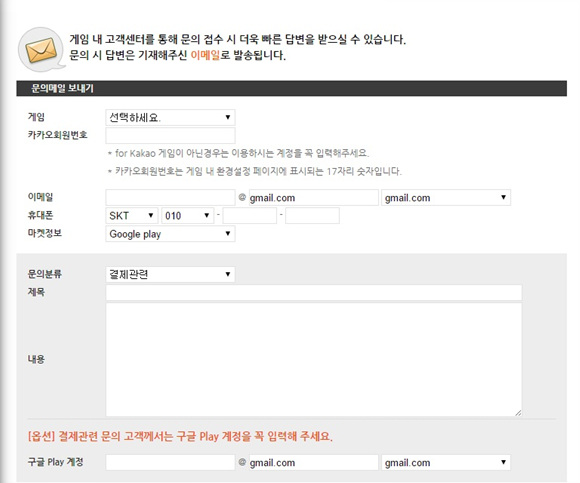 구글플레이 '결제확인 이메일' 내용을 캡쳐해서 스크린샷으로 첨부하면 보다 빠른 처리가 가능하다고 안내해주는 경우도 있다.