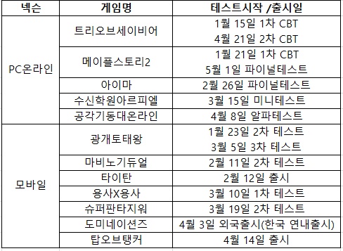 바로 '넥슨'과 '넷마블게임즈'가 그 주인공으로 양 사는 상반기에 가장 적극적으로 신작 출시-테스트를 진행하고 있다.