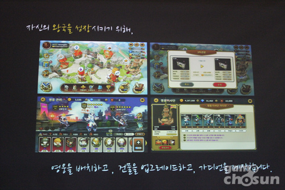 우성원 엠플러스소프트 개발실장은 “히어로즈킹덤은 유저들이 서로 털고 털리면서 성장하는 모바일 RPG다”며 “영웅을 수집하고 성장시키는 모바일 RPG의 틀에서, 서로의 ‘왕국’을 습격해서 자원을 약탈한다는 ‘약탈전’의 비중을 강조했다”고 말했다.