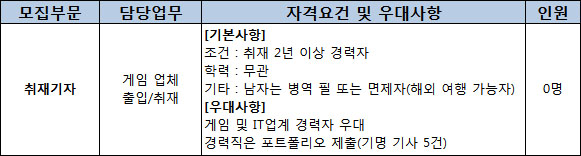 - 포트폴리오 : 경력직 지원자에 한해 기명기사 5건 이상 첨부