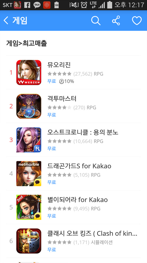 '티스토어'에 다운로드와 결제가 집중되고 있다보니 '뮤오리진'은 아직 구글플레이 순위권에 이름을 올리진 못했다. 하지만 지금과 같은 기세라면 TV광고 등 본격적인 홍보활동이 시작된 후에는 구글플레이 매출순위 10위권에 이름을 올릴 가능성이 있다는 것이 업계관계자들의 중론이다.