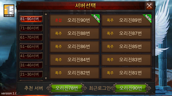 모바일게임 '뮤오리진'(천마시공 개발/웹젠 한국 서비스)이 지난 28일 구글플레이스토어와 티스토어에 출시된 직후 무섭게 몰려드는 게이머들로 모든 서버가 '혼잡', '폭주' 상태를 기록했다. 29일 오후 12시 기준으로 서버가 90개까지 늘어났다.