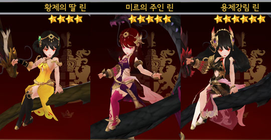 신규 사황 '린'은 마법형 캐릭터로 강력한 광역 스킬 '용린성하'와 '용제의 진노' 그리고 패시브 '홍린포'는 모든 피해를 무효화, 공격 시 실명 효과 능력을 보유하고 있다. 특히 광역 스킬 용제의 진노는 전체 공격과 관통 효과뿐만 아니라 상대(적)의 진형을 바꾸는 능력까지 있어 결투장과 길드전, 공성전에서 높은 활용에 예상된다.
