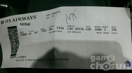 ▲ 길드 모임을 위해 마련한 필라델피아 ↔ LA행 비행기 티켓