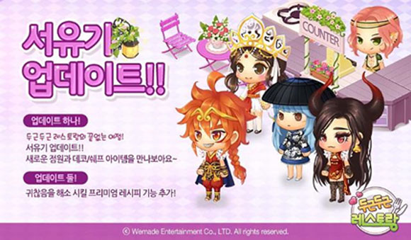 대표적인 동양 고전 서유기 캐릭터 ‘손오공, 삼장법사, 저팔계, 사오정, 우마왕’ 등이 개성강한 S.A급 특별점원으로 등장해 레스토랑에서 손님을 맞이한다. 이와 함께, 각 점원들의 패션을 책임지는 쉐프 아이템 48종과 테이블, 의자, 소품 등 데코 아이템 33종이 일반상점을 통해 선보인다.