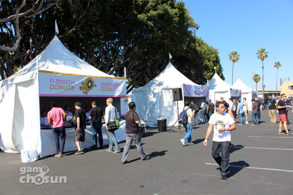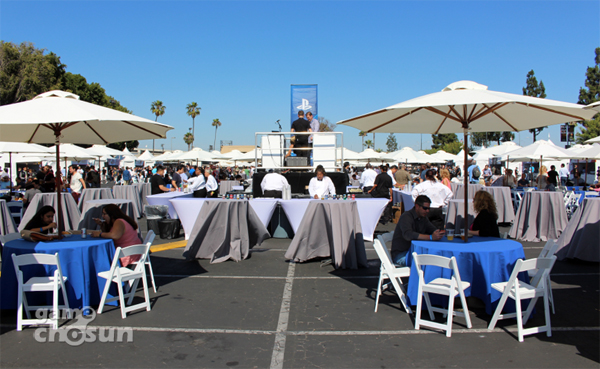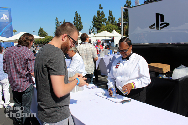 소니컴퓨터엔터테인먼트(SCE)는 15일(현지시간) 미국 로스엔젤레스 메모리얼 스포츠 아레나에서 열리는 사전 컨퍼런스를 앞두고 먹고 즐기는 축제를 마련해 눈길을 끌었다.