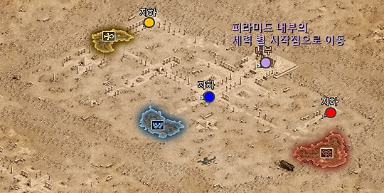 테베라스 사막에서 들어갈 수 있는 테베라스 피라미드 지하(사냥터)는 테베라스 피라미드 내부의 중앙 지역으로 곧바로 이어지기 때문에 후반전 전투에서 중요한 요충지다. 이곳 역시 몬스터가 등장해 사냥과 전투를 병행해야 한다.
