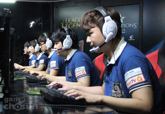 KOO타이거즈(이하 KOO)는 1일 서울 용산e스포츠스타디움에서 열린 '2015 스베누 리그오브레전드 챔피언스 코리아 서머(이하 롤챔스)' 25회차 1경기 2세트에서 CJ엔투스(이하 CJ)에게 승리했다.