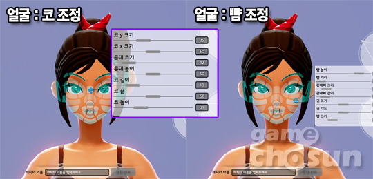 ▲ 코와 뺨, 귀 등 캐릭터의 얼굴을 세밀하게 조정할 수 있다