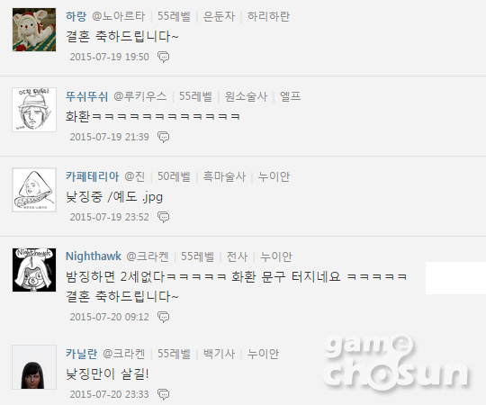 ▲ 두 사람의 결혼을 축하하는 아키에이지 유저들