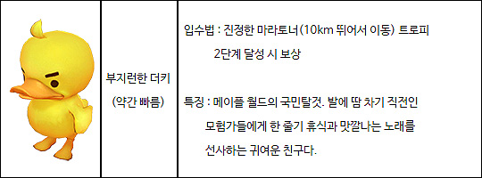 ▲ 메이플스토리2의 10km 달리기 업적 보상 '부지런한 더키(탈 것)'