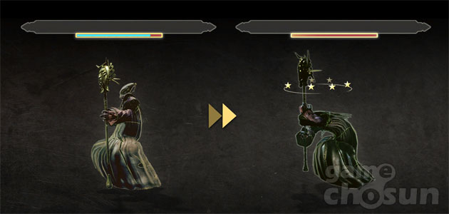 또, 이 탈진 게이지는 보스의 공격 모션 중 먼저 타격을 입혀 더욱 강력한 대미지를 주는 ‘카운터 공격’을 사용하면 보다 빨리 누적시킬 수 있어 위기를 기회로 바꾸는 아슬아슬한 줄타기를 즐길 수 있다.