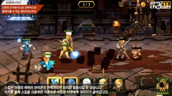 원더5마스터즈에서는 터치와 드래그를 적절히 사용하여 전투를 펼치는 것이 관건. 예를 들어 세밀하게 조작하여 전투를 원활하게 이끌어나가고 싶을 때는 드래그로 공격을 위급 상황에서는 터치로 빠르게 회복 스킬을 사용할 수도 있다.