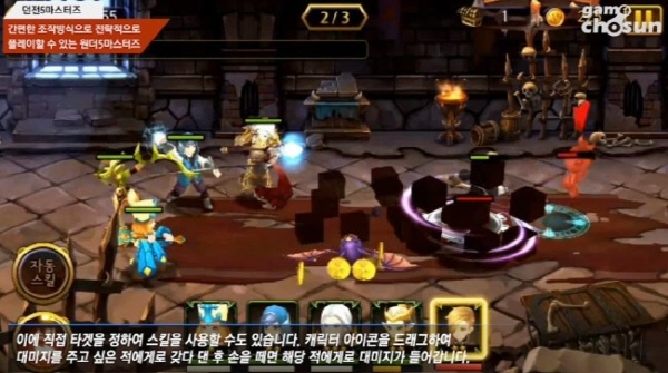 ▲터치와 드래그를 조화롭게 사용하여 전략적으로 전투를 펼치는 것이 원더5마스터즈 전투의 핵심입니다.