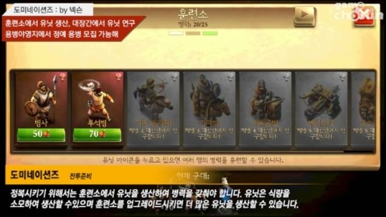 ▲전투에 나가기 전 훈련소에서 유닛을 생산하여 출전해야 합니다.