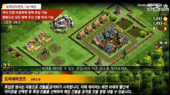 ▲게이머는 화면 아래의 빨간색 아이콘을 통해 특정 건물을 공격하라고 명령을 내릴 수 있습니다.
