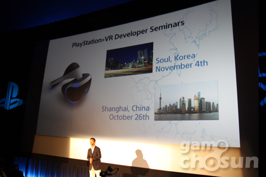 먼저 오다히로유키 부사장은 새로운 디스플레이 '플레이스테이션 VR'를 소개하며 다가오는 11월 부산 지스타 출품 그리고 11월 4일 서울 플레이스테이션 VR 세미나 일정을 발표됐다.