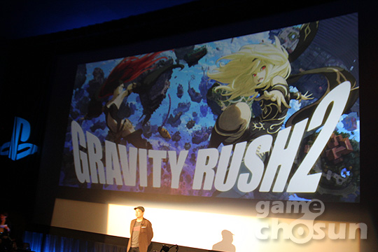 소니컴퓨터엔터테인먼트 차례에서 무대에 오른 케이치로토야마 CD는 '그라비티러시' 시리즈 신작 '그라비티러시2'를 발표했다. 이세계에서 중력을 활용한 액션을 다루고 있는 그라비티러시2는 전작보다 더 많은 콘텐츠를 추가되었고 그래픽을 강화해 PS4 플랫폼으로 2016년 전세계 동시 출시한다.