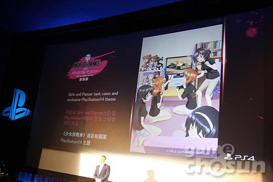 다음 무대에선 워게이밍 '빅터키슬리' CEO가 무대에 등장해 '월드오브탱크'의 PS 버전을 발표했다. 이제 월드오브탱크는 PS4는 물론이고 PS Vita에서도 플레이가 가능하며 PS 유저를 위한 전용맵도 함께 공개했다. 이어서 애니메이션 '걸스앤판쳐'와 콜라보 프로모션도 발표했다.
