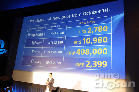 이번 소니 컨퍼런스에서 타이틀 발표가 모두 끝나자 마지막으로 아시아 전역을 대상으로 10월 1일부터 적용되는 플레이스테이션4 가격 인하가 발표됐다.