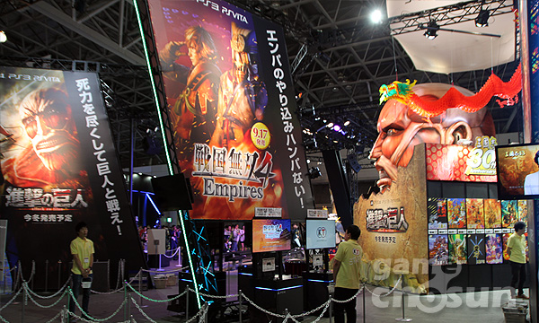 이미 하루 전 소니 컨퍼런스에서 삼국지 30주년을 기념한 '삼국지13'과 신규 타이틀 '진격의거인'을 공개한 코에이테크모는 이날 도쿄게임쇼에 마련한 코에이테크모 부스에서 전국무쌍, 진삼국무쌍 시리즈의 신작을 함께 공개했다. 코에이테크모는 현장에 시연장을 마련해 방문객을 맞이했다.