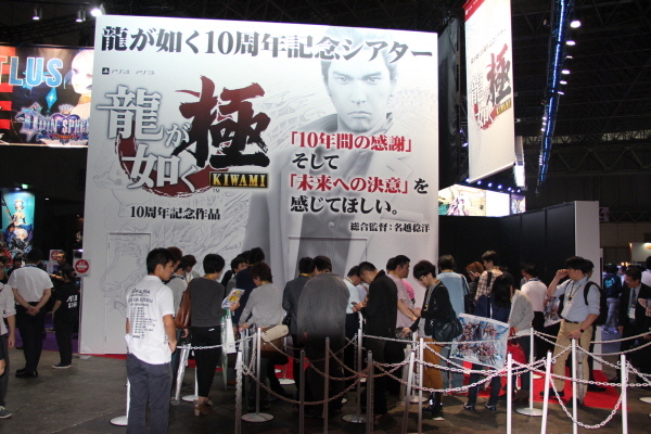 세가 부스의 메인은 단연 용과같이 형제였다. 1편을 리메이크한 '용과같이:극'과 시리즈 최신작 '용과같이6'를 전면에 내세웠다. 기존까지 세가를 대표하던 캐릭터 '하츠네미쿠'를 몰아내고 야쿠자가 그 자리를 차지한 셈.