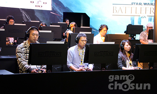▲ (우측 아래) EA '스타워즈:배틀프론트' 시연장에서 상대를 압살하며 승리를 이끌었던 여성게이머