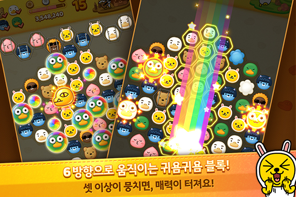 게임 진행 방식은 육각형 블록을 통해 여섯 방향으로 매칭해 나가는 형식이며 유명 캐릭터를 수집하는 재미까지 쏠쏠하다.