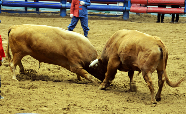 소싸움은 주로 마을과 마을의 경계 또는 넓은 강변에서 펼쳐진다. 넓고 튼튼한 아레나를 만들어서 황소 두 마리를 풀어두면 본격적인 배틀이 시작된다. 앞발로 땅을 긁어 흙을 파헤치면 화가 났다는 표시인데 이 신호를 시작으로 서로 머리를 맞대고, 뿔로 밀고 받치며 열을 올린다.