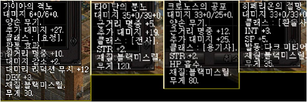 | 전설 무기 | 옵션 | 획득 방법 | |