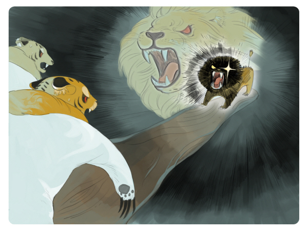 ▲ 겁쟁이 사자의 활약 삽화. 이정도면 솔직히 '필살기' 수준 아닌가?