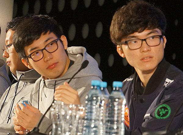 미디어데이 첫 질문은 결승에 임하는 양 팀의 심리였다. 이에 페이커 이상혁 SKT 선수는 처음에는 긴장도 많이 했지만 경기 경험이 쌓이며 마음 편하게 게임을 플레이한다고 전했고 쿠의 이서행 선수는 우승이 절실하기 때문에 많은 준비를 했다고 짧게 각오를 전했다.