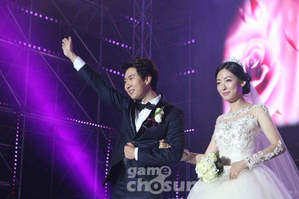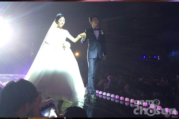 10) 신랑신부 웨딩 촬영 및 이윤열 선수가 준비한 영상에서 "눈물보다 웃는 얼굴을"라며 윙크 시전. "나랑 결혼해줄래"라고 말하는 순간 버퍼링 생김.